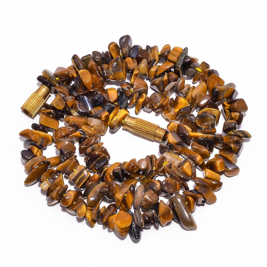 Натуральный камень Тигровый глаз Неограненные гладкие бусины Ожерелье 4-10 мм 16.5" UB-7893 UB-7893
