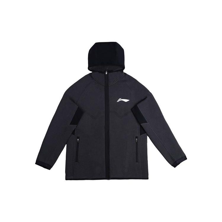 Li Ning CBA Series Повседневная спортивная куртка на молнии с капюшоном и длинным рукавом Мужские куртки черного цвета AWDSJ33-1