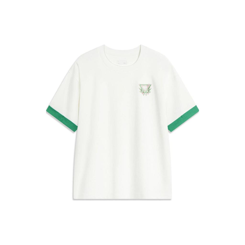 Футболка женская с принтом китайской культуры Li Ning, однотонная, с заниженными плечами, цвет белый AHST430-1