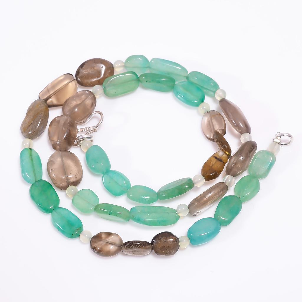 Натуральный дымчатый кварц лабрадорит авантюрин бусы ожерелье 4-15 мм 18" UB-7974 UB-7974