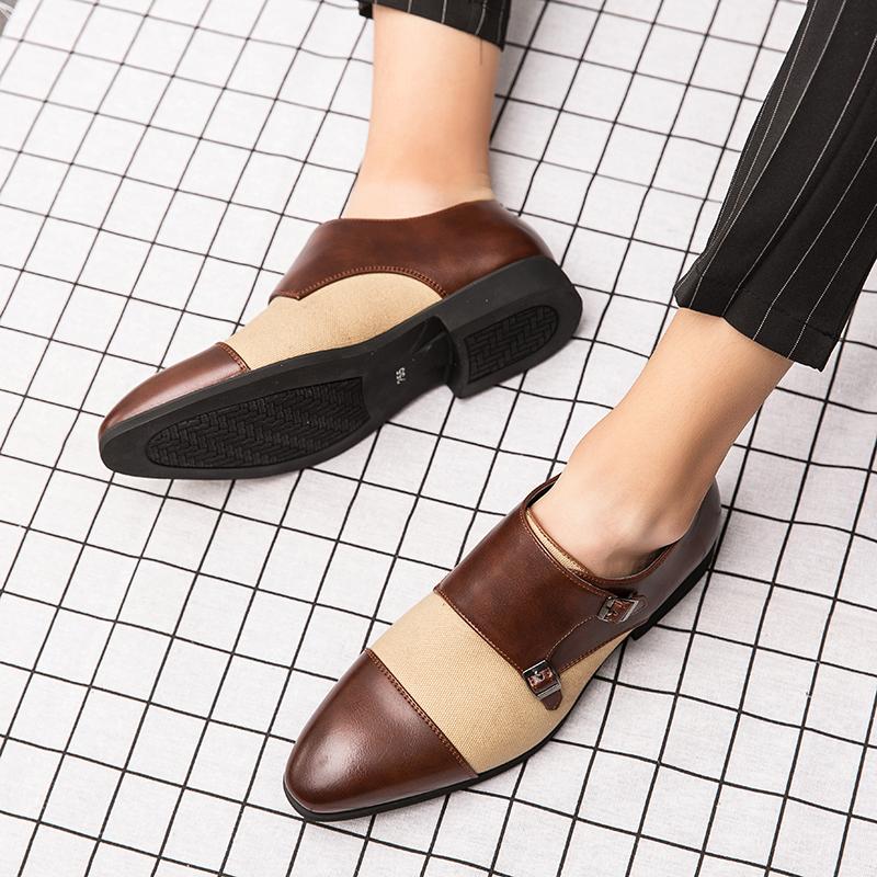 Мода Модные Лефу Мужская обувь Черный Коричневый Заостренный Идеальная Склейка Металлическая Пряжка Сотня Кожаная обувь ПУ Обувь Размер 38-48