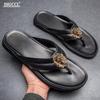 Модные мужские шлепанцы вьетнамки мужские из натуральной кожи женские пляжная обувь xl 46 47 женские сандалии Дизайнерский бренд большой размер шлепанцыT2