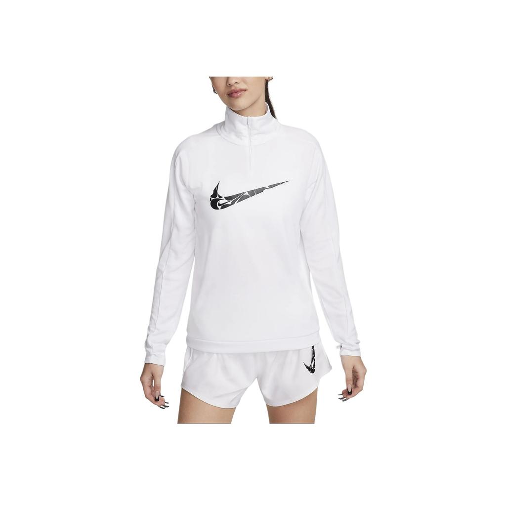 Nike Футболка с длинным рукавом и логотипом Swoosh, повседневная, с влагоотводящей подкладкой, с застежкой-молнией на половину длины, женская, белая FN2637-100