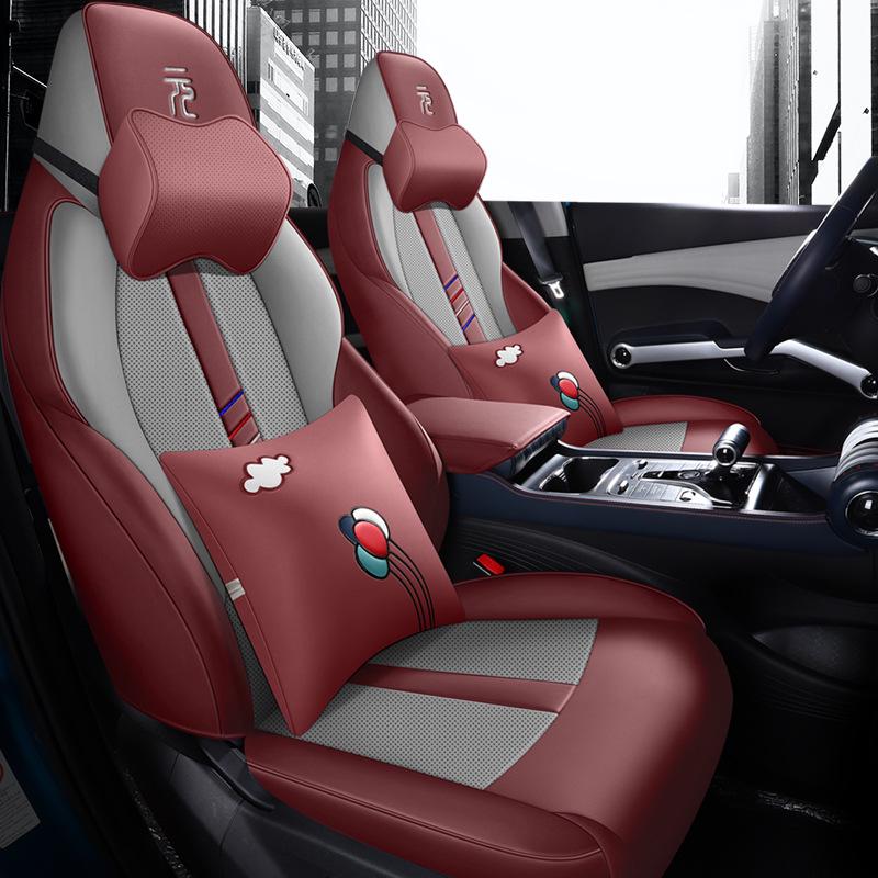 BYD Yuan PLUS Перфорированная кожаная накидка на сиденье автомобиля - Круглогодичная, Полностью закрытая, Чехол для пяти сидений. — купить товар онлайн с бесплатной доставкой по всему миру!