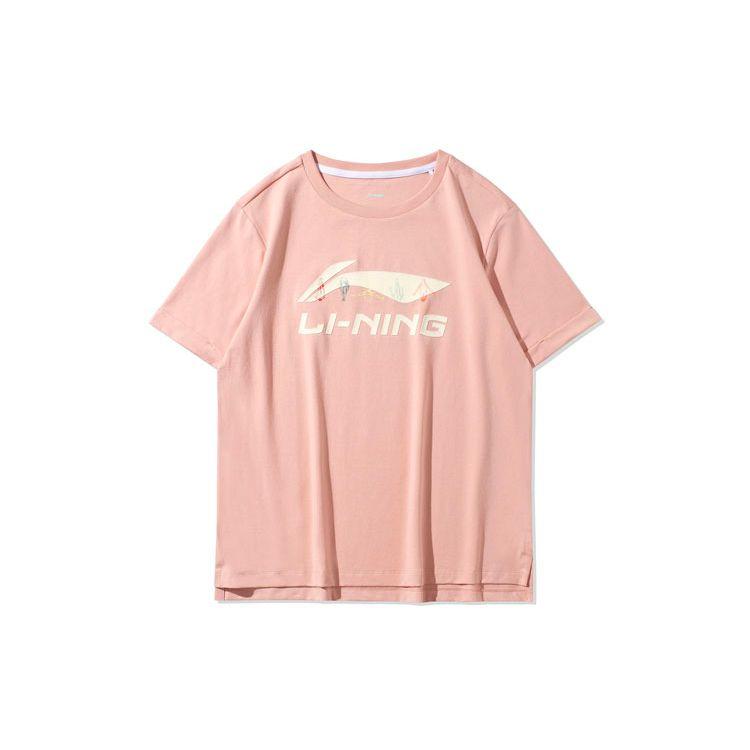 Li Ning Sports Fashion Series Свободная футболка с коротким рукавом для женщин, топы Mist-Rose-Pink AHSQ258-2