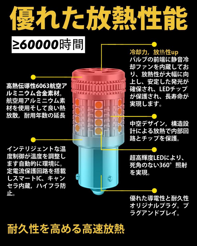 [Превосходное рассеивание тепла и долговечность] Светодиодные указатели поворота S25 изготовлены из авиационного алюминиевого сплава и имеют уникальную конструкцию для рассеивания тепла. Они оснащены интеллектуальным чипом постоянного тока, устойчивы к радио- и другим электромагнитным помехам и имеют встроенный элиминатор для предотвращения супервспышек.. Передняя часть лампы оснащена современным интеллектуальным охлаждающим вентилятором, который защищает светодиодный чип и значительно улучшает теплоотвод, обеспечивая стабильное свечение, отличный теплоотвод и долгий срок службы.. Срок их службы составляет более 60 000 часов, что в 100 раз дольше, чем у галогенных ламп.