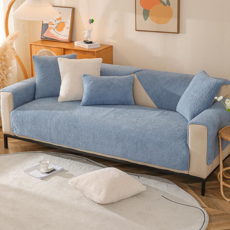 Зимняя подушка для дивана из овечьей шерсти, утолщенная плюшевая подушка для сиденья, нескользящий кожаный чехол для дивана, однотонная, простая скандинавская зимняя модель