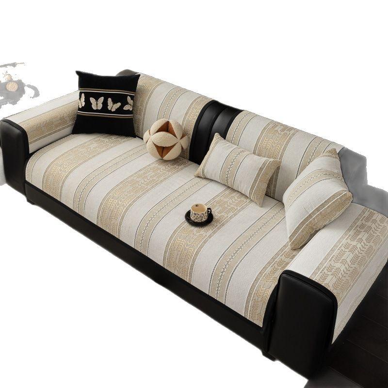 Подушка для дивана из шенилла в полоску, универсальная для всех сезонов, новая современная подушка для дивана в стиле легкой роскоши, нескользящий чехол для дивана прямой ряд