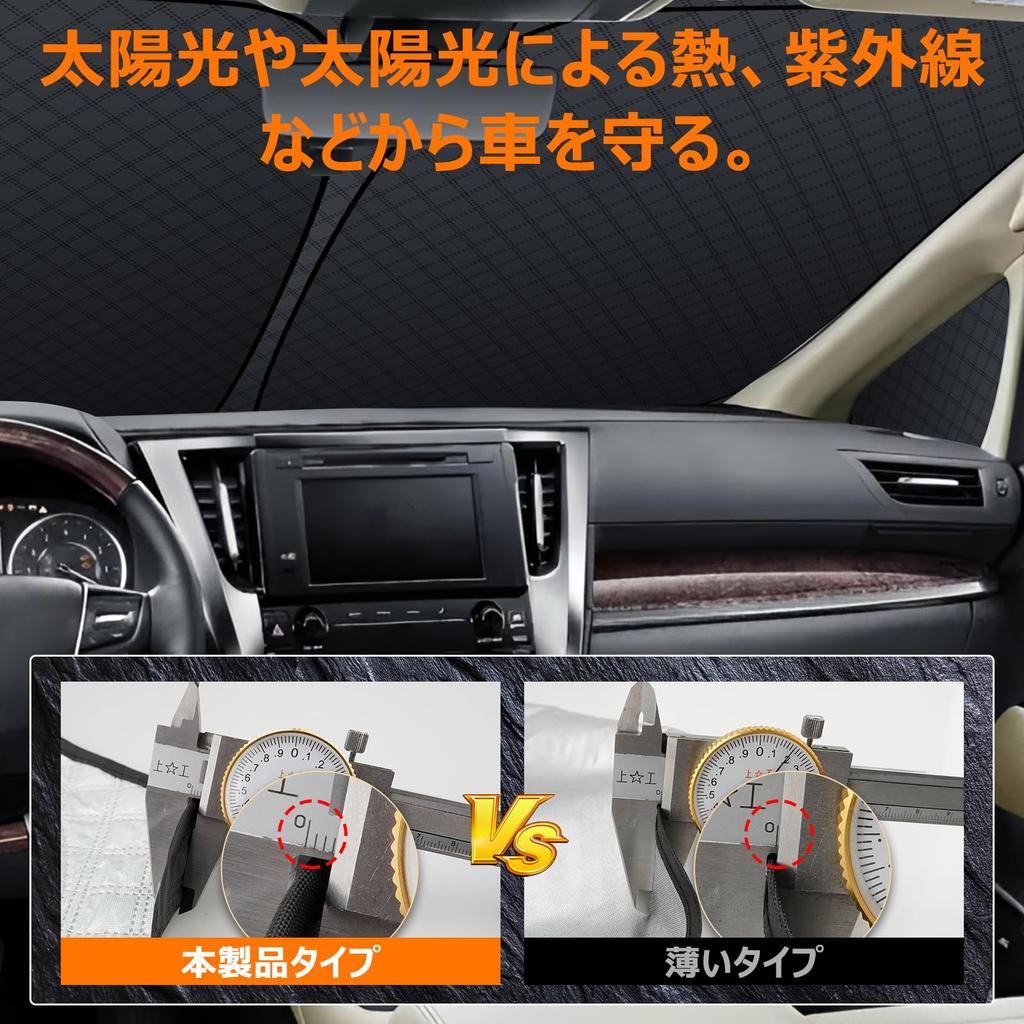 [Reinforced 6-Layer Structure & Next-Generation Special Fabric] Layer 1: High-Quality, High-Density Aluminum Heat-Shielding Sheet; Layer 2: High-Quality, High-Density Aluminum Heat-Shielding Sheet; Layer 3: Polyurethane Insulation; Layer 4: Polyurethane Insulation; Layer 5: High-Quality, High-Density Aluminum Heat-Shielding Sheet; Layer 6: Polyurethane Insulation. The sleek and stylish silver surface provides powerful sun protection. Standard sunshades are thin and offer limited light blocking. This product uses a thick silver fabric for increased light blocking. Note that the silver surface of standard sunshades can rub against the interior, resulting in a color transfer.