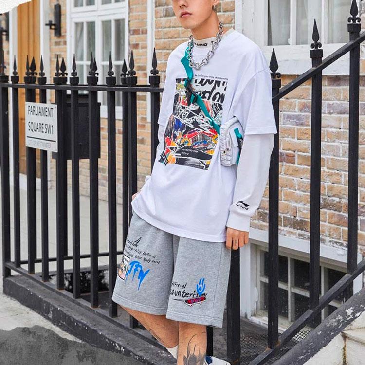 Li Ning CF Cool Sports Fashion Series Printed Casual Loose Shorts Men shorts Gray AKSR529-1
