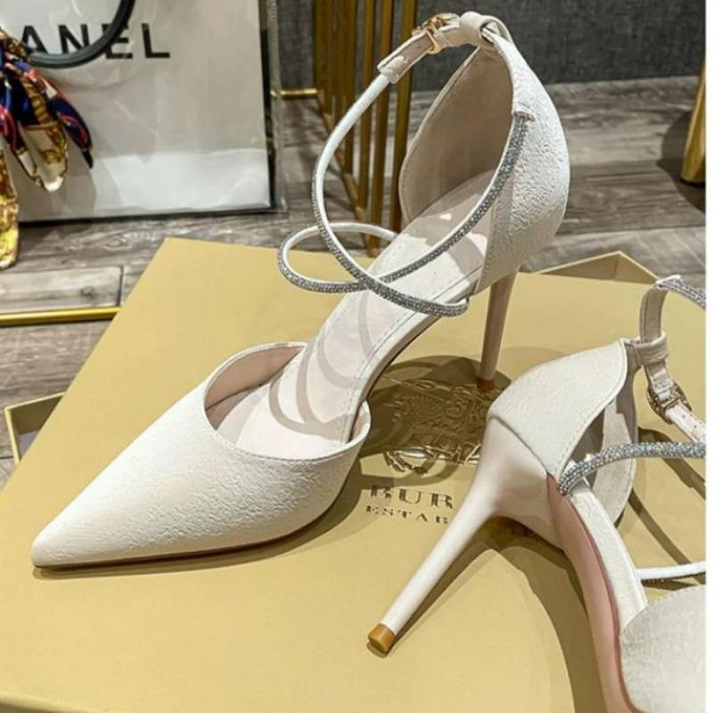 Новые модные туфли-лодочки для женщин со стразами на высоком каблуке, модные свадебные туфли с пряжкой, заостренные туфли на шпильке, модные босоножки на каблуке T-образной формы, модельные туфли