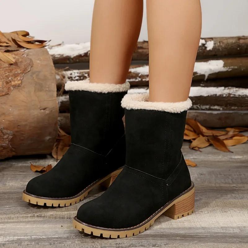 Модные женские ботинки 2024 Высококачественный женский обувной набор Зимние с круглым носком Однотонные Плюшевые и бархатные Теплые На толстом каблуке Снежные ботинки