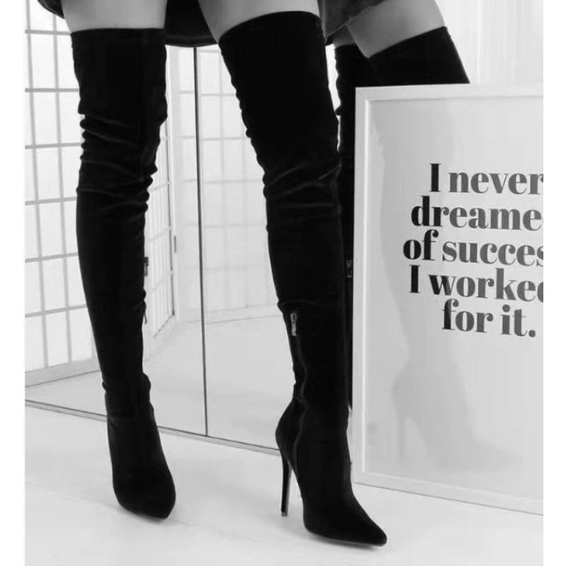 Модные бархатные длинные сапоги для женщин Новые весенне-осенние сапоги выше колена Женские туфли с острым носком и шпилькой Большие размеры 34-43 Эластичные ботфорты до бедра