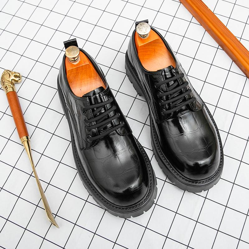 Модная весенняя мода Мужские туфли дерби из крокодиловой кожи Удобная толстая подошва Новые мужские ретро шнуровка Деловые повседневные кожаные туфли