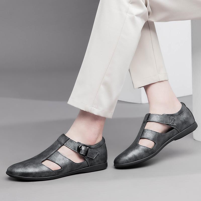 Fashion Fashionable New Two-layer Cowhide Sandals Low Top Men's Shoes Brand Outdoor Men's Breathable Hollow Casual Buckle Leather Shoes