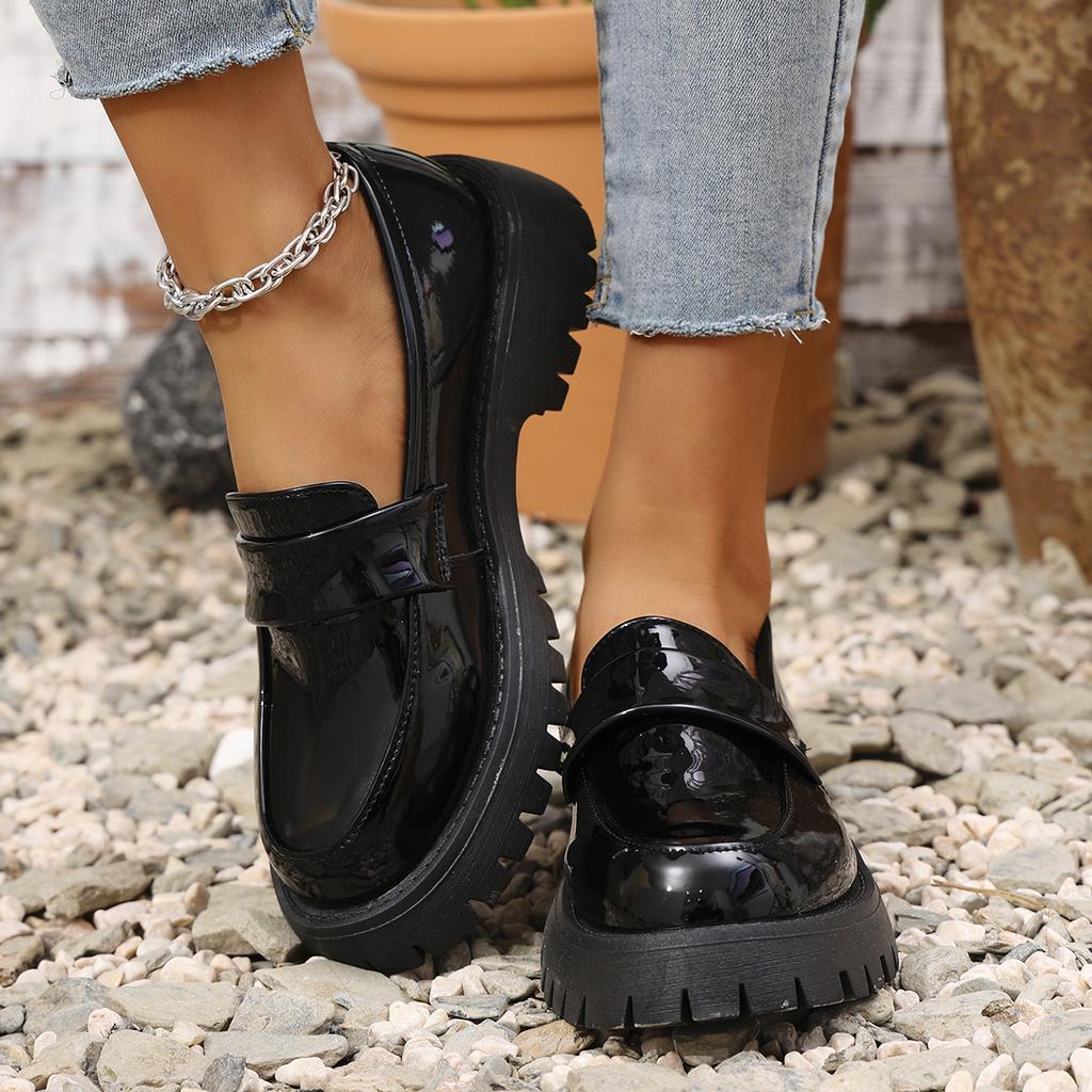 Модные Новые Женские Повседневные Дизайнерские Лоферы на Платформе Модные Черные Лакированные Туфли Удобная Обувь Слипоны на Плоской Подошве Большого Размера 42