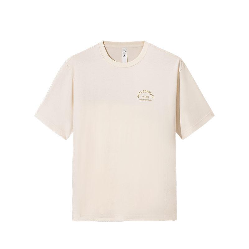 Anta Удобная Простая Свободная Футболка с Принтом Букв Дышащая Со спущенным плечом Короткий рукав Унисекс Топы Тепло-Солнечно-Белый 152527123-1