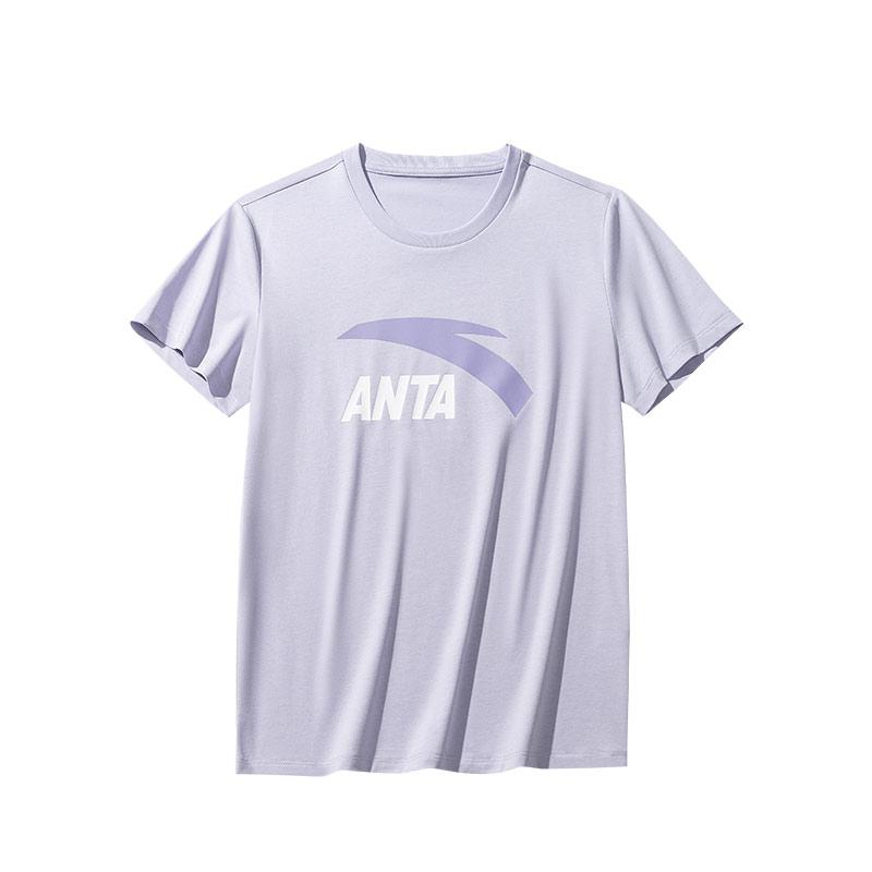 Anta Удобная Повседневная Простая Универсальная Футболка-Пуловер с Круглым Вырезом и Коротким Рукавом Женские Футболки Morning-Mist-Purple 962528115-3