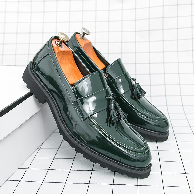 Модные мужские лоферы больших размеров 2025 на толстой подошве с кисточками из лакированной кожи, глянцевые слипоны для бизнеса, формальные кожаные туфли, новая мужская обувь