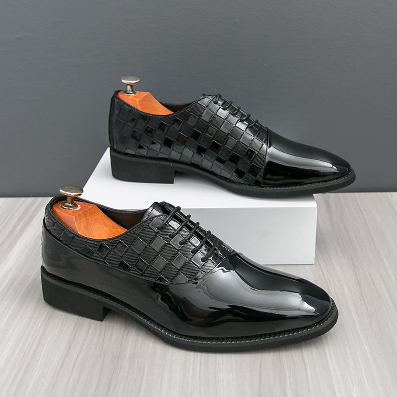 Модные туфли из лакированной кожи высокого качества, формальные офисные оксфорды, элегантная свадебная обувь, деловая обувь на шнуровке на платформе, удобная мужская обувь