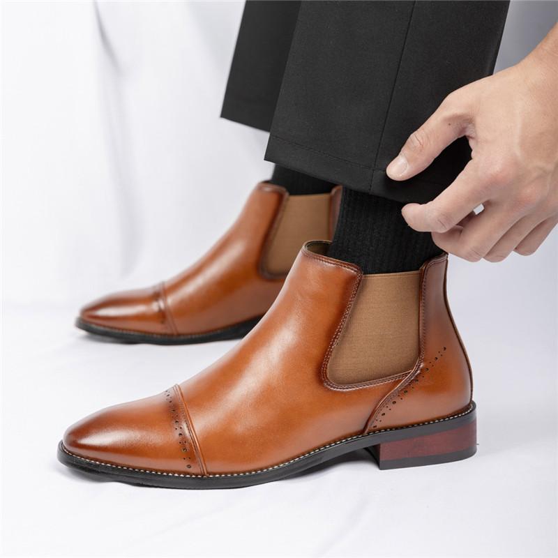 Мода Мода Мужские Черные Коричневые Заостренные Деловые Повседневные Ботильоны Мужские Зимние Высокие Новинка Удобные Кожаные Ботинки Челси