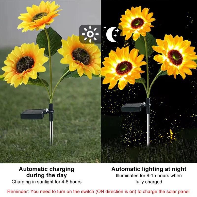 Солнечный светильник-подсолнух 1/3 головки, уличные газонные светильники, водонепроницаемый, имитация цветочного ландшафтного светильника для домашнего сада, рождественского декора