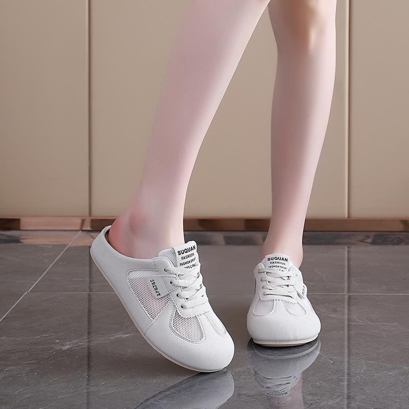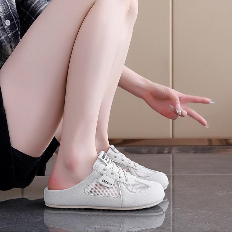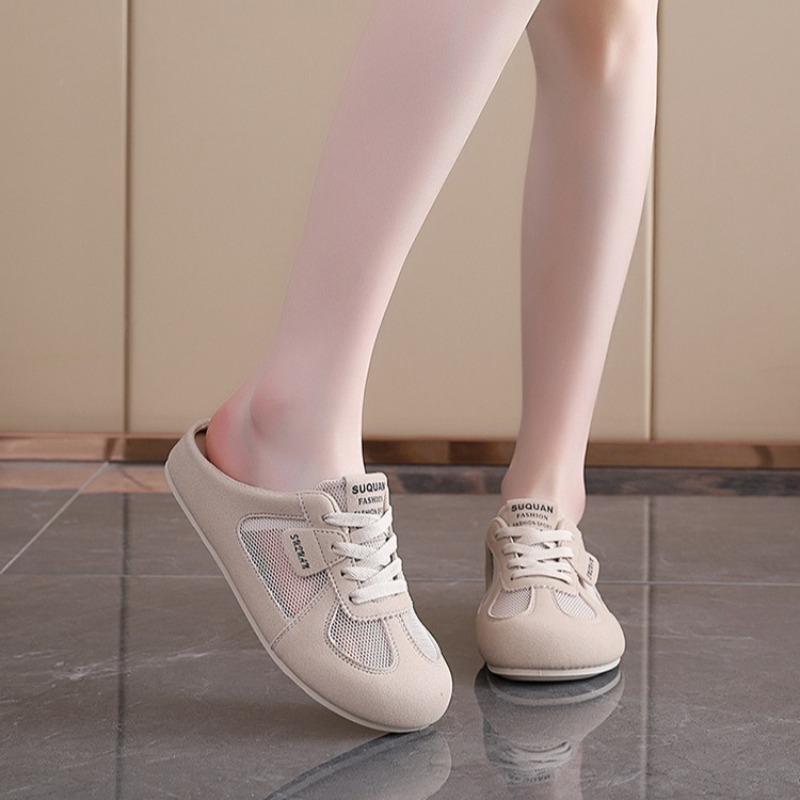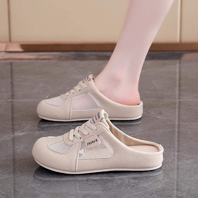 Модная женская обувь Модная сетчатая дышащая обувь на плоской подошве Нескользящая с круглым носком Уличная женская обувь на шнуровке Баотоу Полушлепанцы Sandalias Mujer