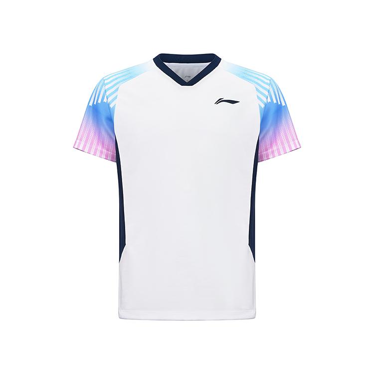 Li Ning Серия Бадминтон Высококачественная Динамичная Полосатая Мягкая Дышащая Футболка с V-образным вырезом и коротким рукавом Унисекс Топы Белый AAYV199-1 — купить товар онлайн с бесплатной доставкой по всему миру!