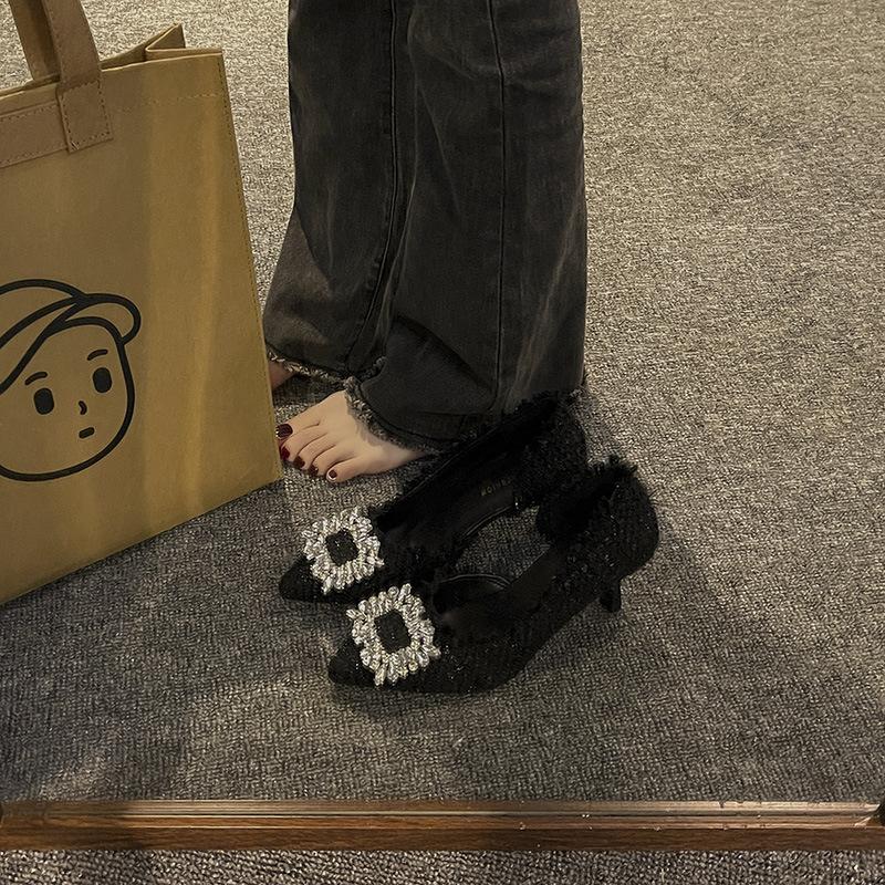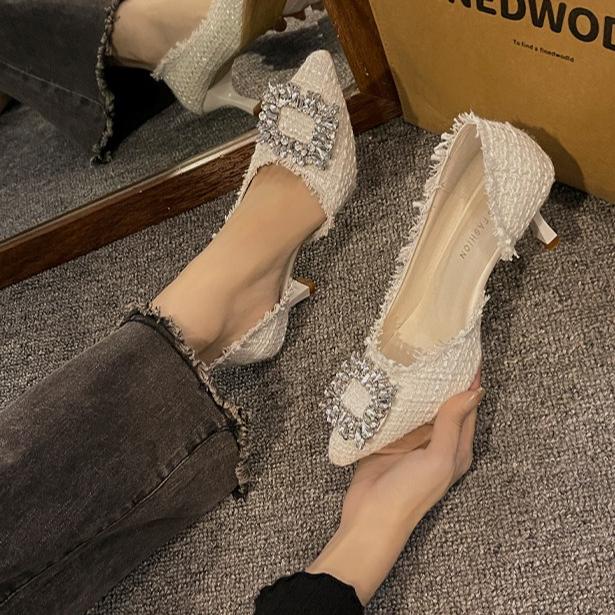 Мода Женщины Высокие Каблуки Мода Квадратная Пряжка из Стразов Острый Носок Туфли на Высоком Каблуке Элегантный Темперамент Женская Вечеринка Свадебные Туфли Tacones