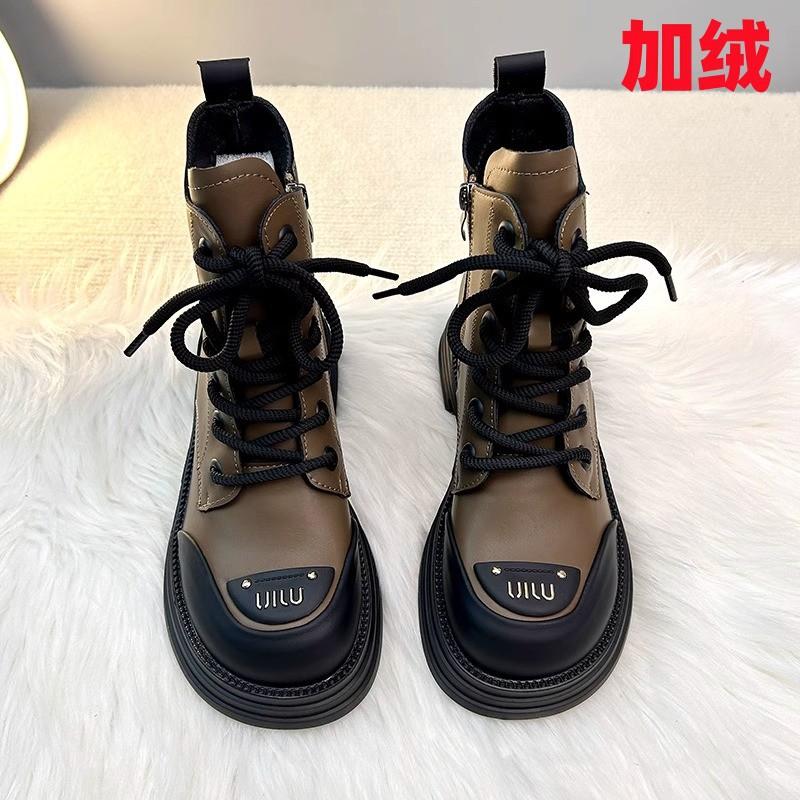 Модные женские ботильоны на высоком голенище Модные ретро кожаные ботинки на платформе Женские ботинки-рыцари с круглым носком на шнуровке Дизайнерские короткие ботинки Botas Muje