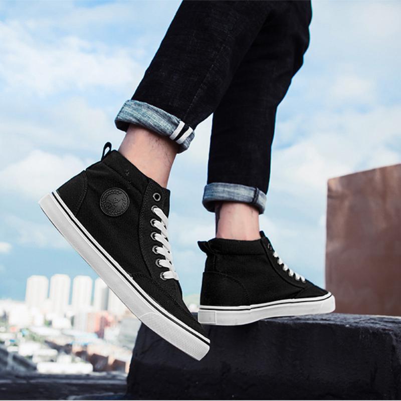 Модная парусиновая обувь с высоким верхом для мужчин Удобная мужская вулканизированная обувь Модные мужские повседневные кроссовки Дышащая обувь для скейтборда Мужская — купить товар онлайн с бесплатной доставкой по всему миру!