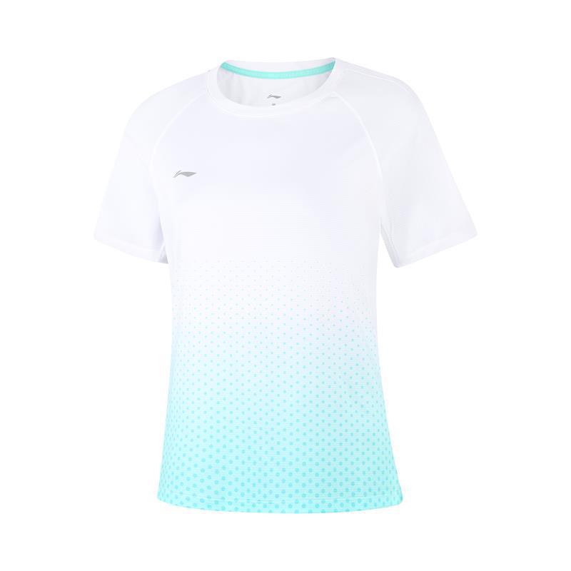 Li-Ning Градиентная футболка с круглым вырезом, дышащая, универсальная, с коротким рукавом, женский топ, стандартный, белый, островной синий, ATSV436-4
