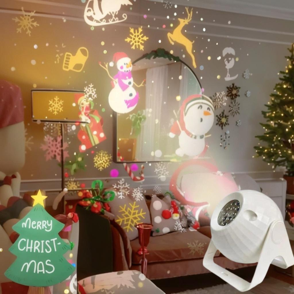 Рождественский светодиодный проектор с 16 мультяшными узорами, USB, вращающийся на 360° светильник-снеговик для праздничного украшения дома, сада, вечеринки — купить товар онлайн с бесплатной доставкой по всему миру!
