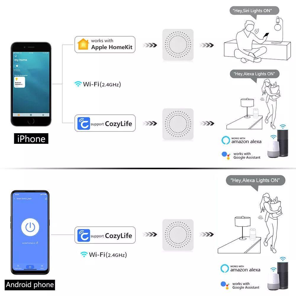 Cozylife WiFi Мини Умный Выключатель 16А/20А Релейный Модуль Режим DIY Голосовое Управление Управление через Приложение Удаленное Управление AC100-240В Для Alexa Google Home
