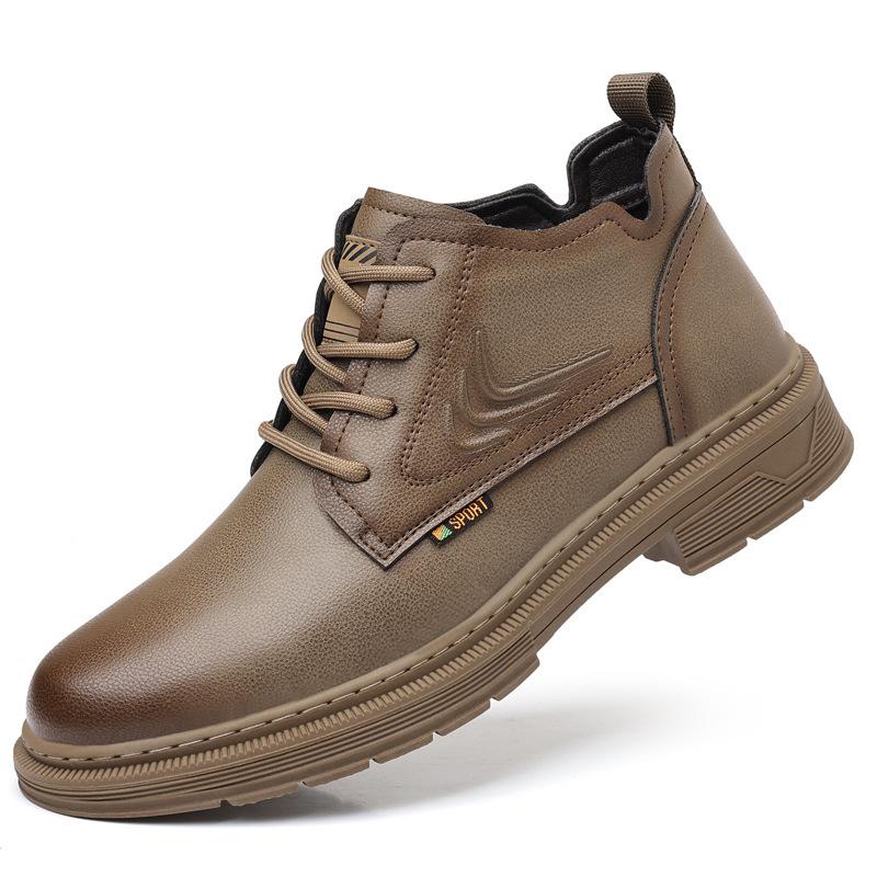 Модные зимние кожаные бархатные теплые мужские сноубутсы, модные повседневные мужские туфли на платформе с мягкой подошвой, дизайнерские нескользящие кожаные ботинки для мужчин