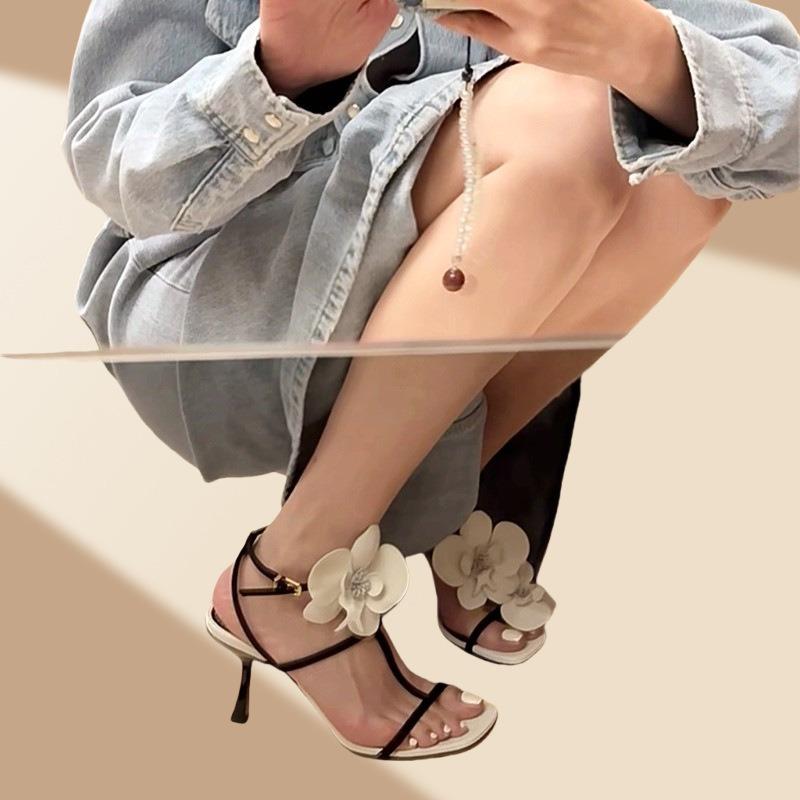 Модные летние новые женские сандалии с открытым носком, трендовые шлепанцы с цветком орхидеи-бабочки, женские уличные повседневные сандалии на тонком каблуке, Sandalias Mujer