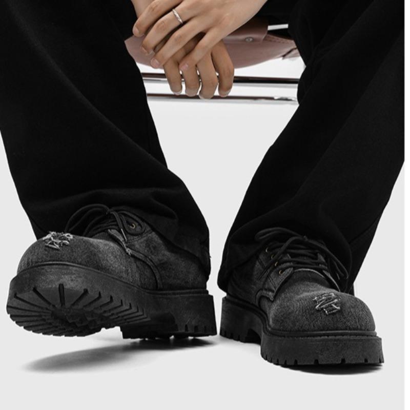 Модная мужская обувь дерби из потертого денима на платформе с круглым носком, повседневная кожаная обувь с большой головой, нишевая авангардная уличная обувь для мужчин
