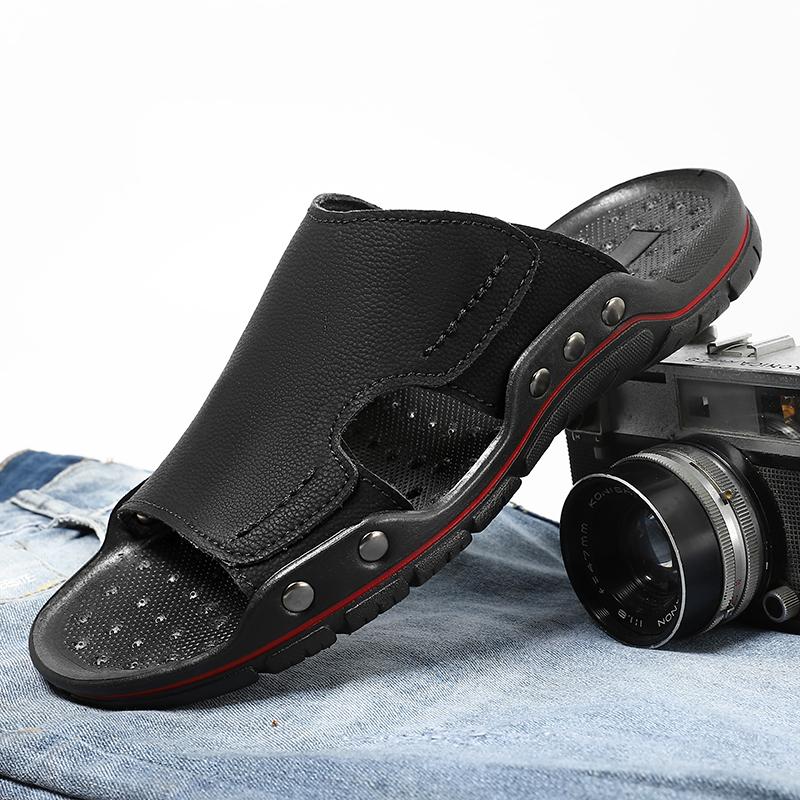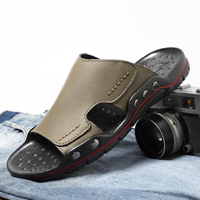 Модные летние противоскользящие уличные сандалии, нескользящие мужские полуботинки, повседневные плоские туфли для прогулок, мужские слипоны, новая модель 2025 года, повседневные кожаные шлепанцы