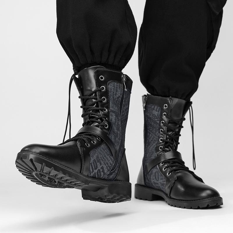 Модная мужская обувь до середины икры, ботинки челси с ремешком на пряжке для мужчин, кожаные мотоботы, высокие мужские туфли, элегантные мужские кожаные ботинки