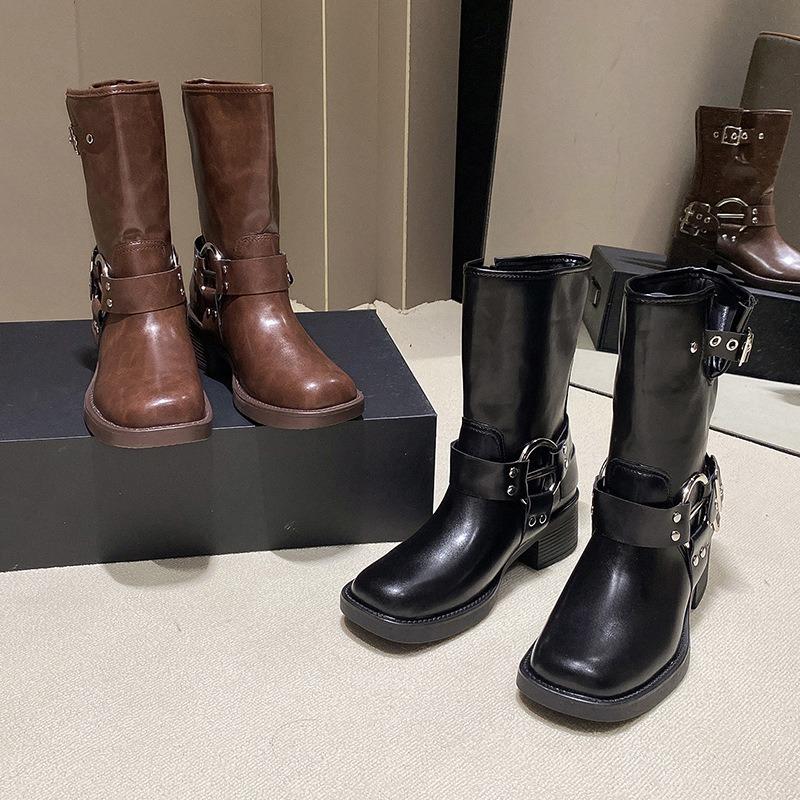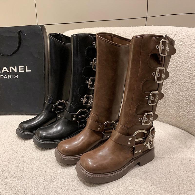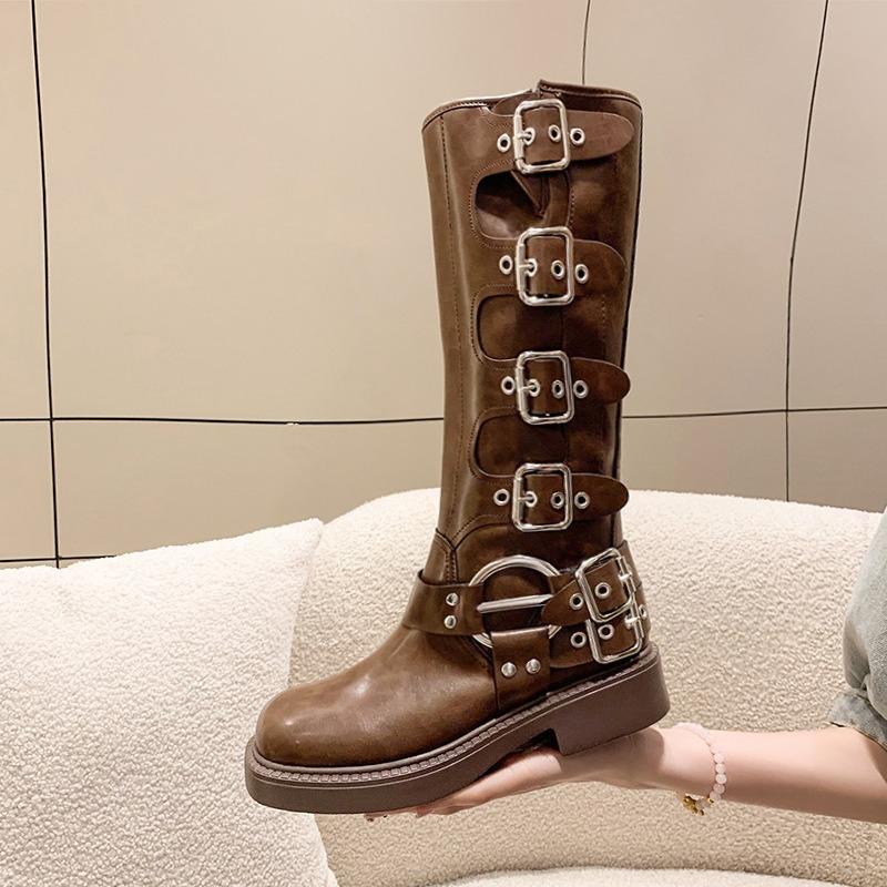 Мода Новый Тренд Женские Сапоги Ретро Коричневые С Пряжкой На Ремне Женские Высокие Сапоги Сапоги Вестерн Ковбойские Модные Темпераментные Сапоги Botas Para Mujer