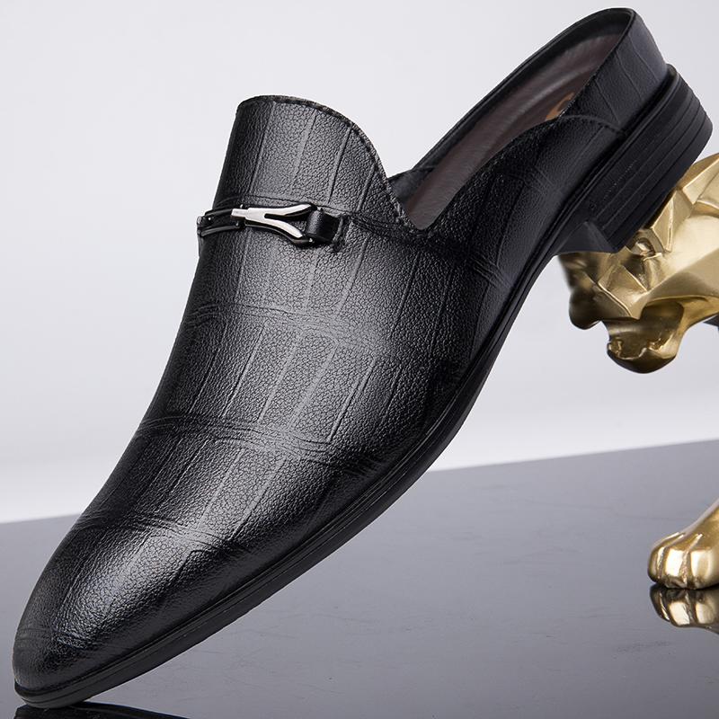 Мода Новое поступление Мужские туфли Мюли Натуральная кожа Низкий каблук Шлепанцы Дышащая мужская обувь на полступни Деловая повседневная обувь Полусапожки