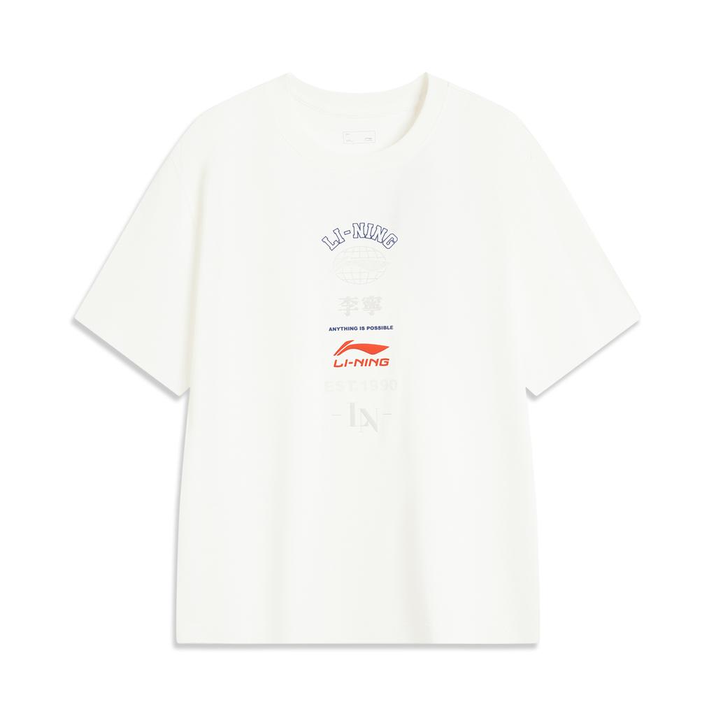 Li-Ning Дышащая Универсальная Футболка с Буквами, Круглым Вырезом и Коротким Рукавом, Мужские Топы Молочно-Белый AHSV163-5