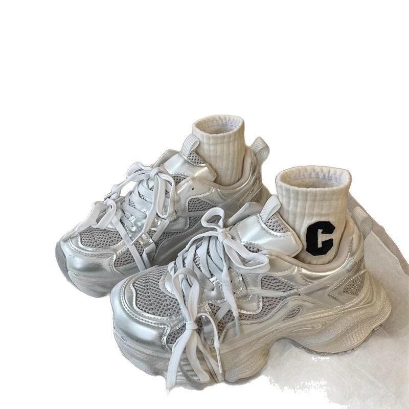 Спортивная обувь для отдыха грязная старая весенне-летняя новая обувь на толстой подошве-маффин, универсальная дышащая обувь для папы, женская