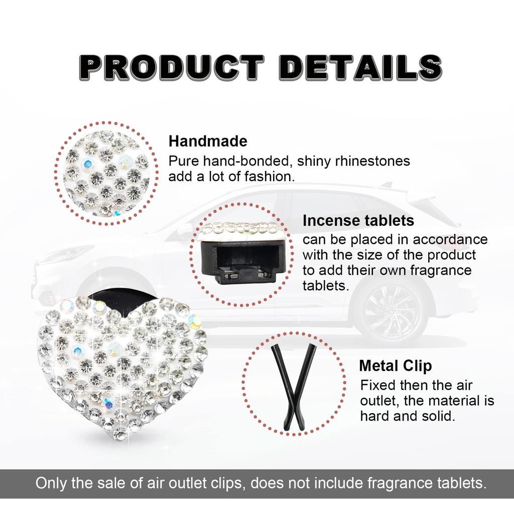 RBOKO 2pcs Car Air Vent Clips,Bling Crystal Heart Charm Car Air Vent Clip,Car Air