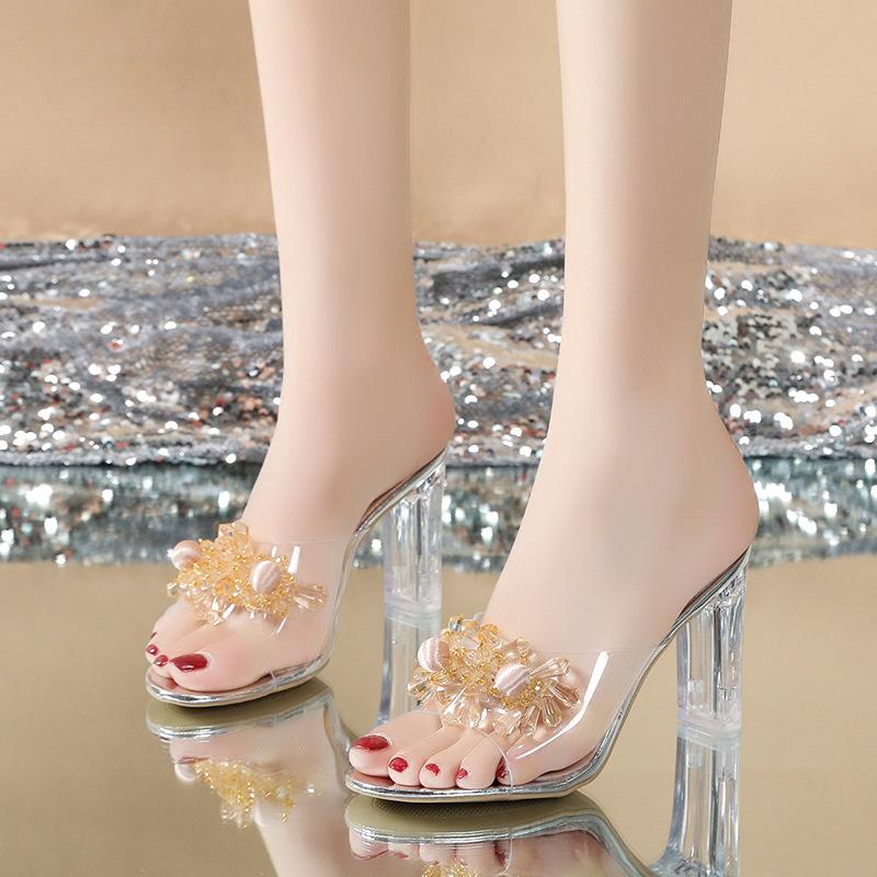 Мода Мода Стразы Женские Туфли на Высоком Каблуке ГЛАДИАТОР Стиль Женские Ультра Высокие Каблуки Сандалии Свадебный Банкет Стеклянные Туфельки Туфли Mujer