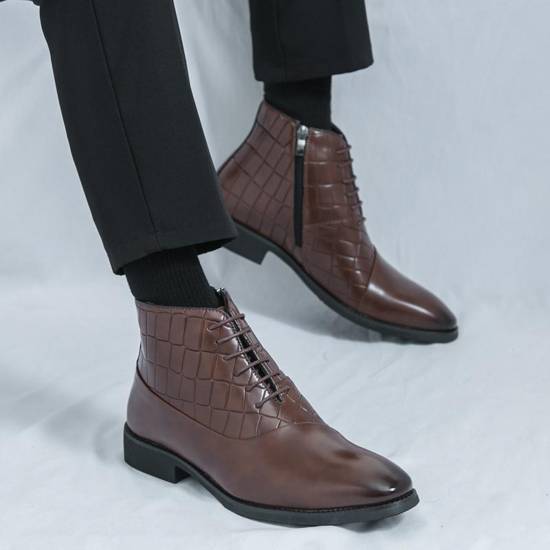 Мода Мода Обувь слипоны Досуг Бизнес Мотоциклетные ботинки На шнуровке Мужские ботинки челси Повседневные Кожаные Мужские Удобные Ботильоны
