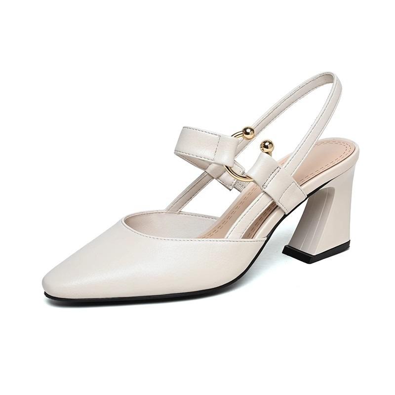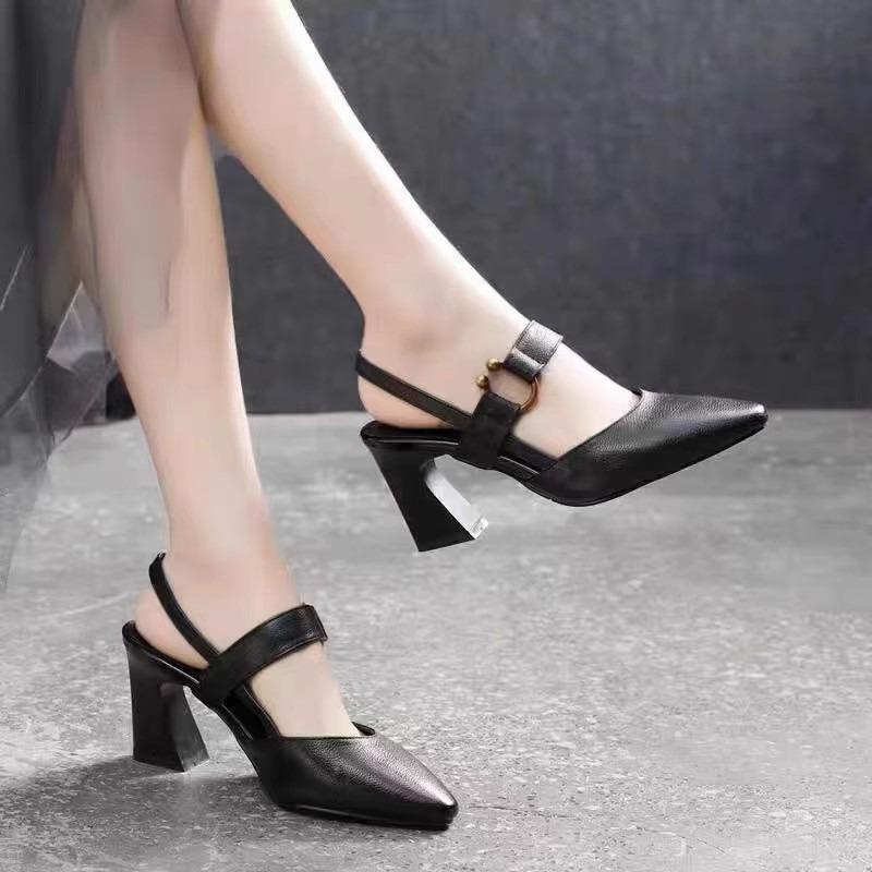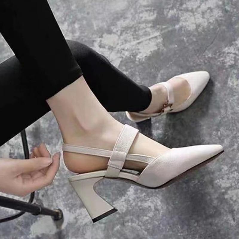 Босоножки на высоком каблуке женские летние новые с острым носком и закрытой пяткой, сандалии с круглой пряжкой на толстом каблуке, модные сандалии