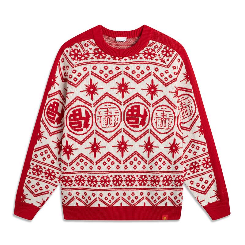 Li-Ning Удобный Повседневный Простой Пуловер с Круглым Вырезом и Длинным Рукавом Вязаный Свитер Мужской топ Красный AMBV183-1