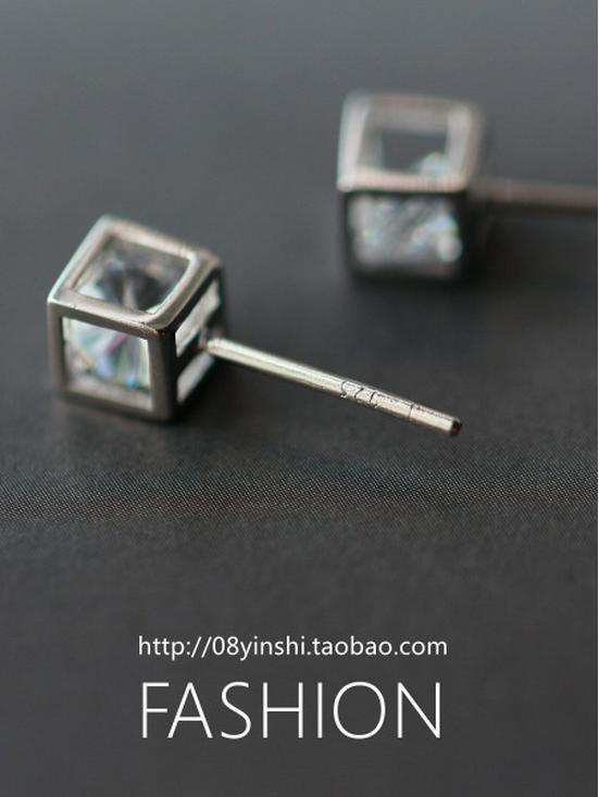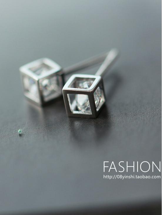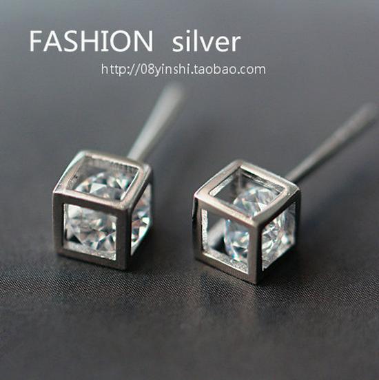 Серьги-пусеты из стерлингового серебра 925 пробы с кубическим бриллиантом - Европейский и американский стиль