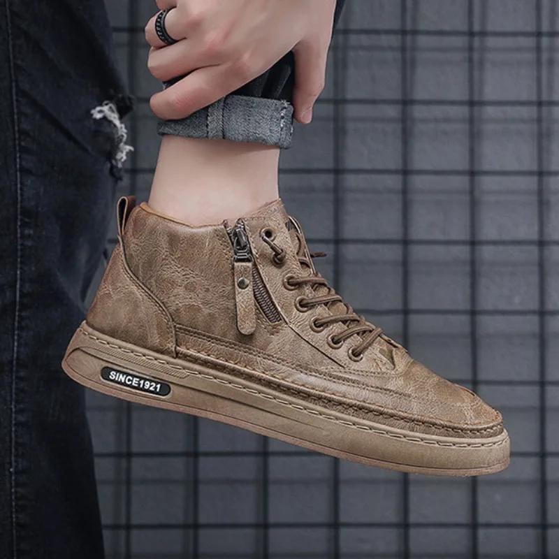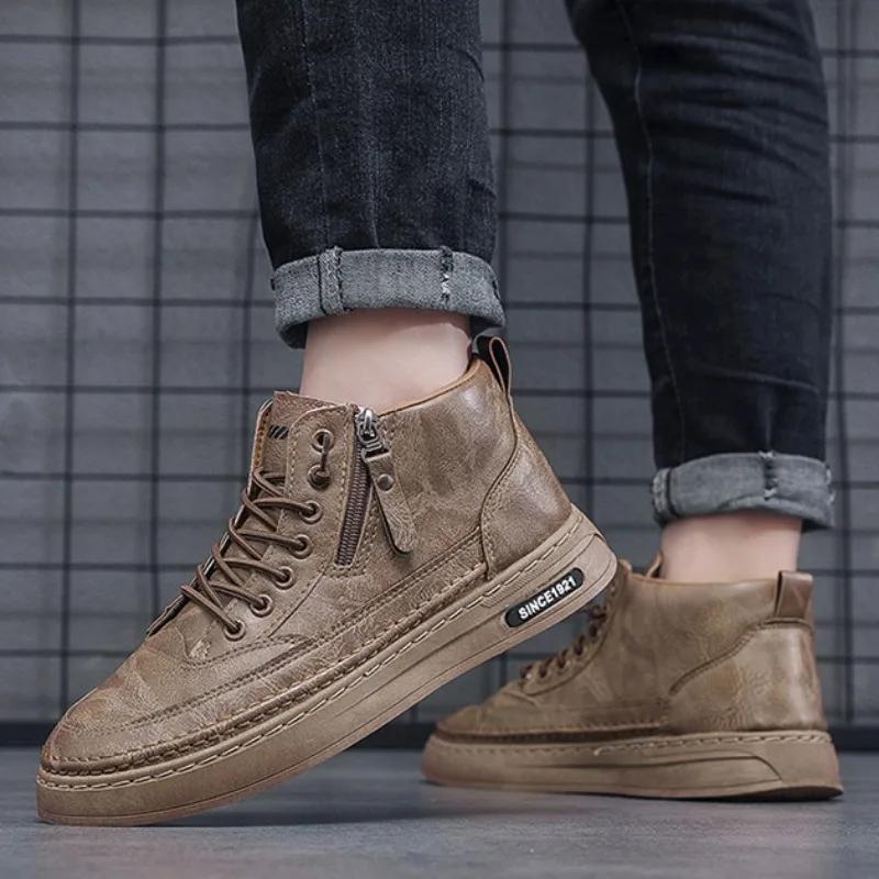 Модная мужская кожаная повседневная обувь 2024 весна высокие ботинки на платформе кожаные ботинки короткие на шнуровке меховые теплые ботильоны мужская обувь в стиле милитари боты
